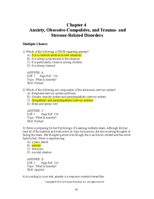 Test Banks For Fourth Topic Chapter 4 Anxiety Obsessive Compulsive And Trauma And Studocu